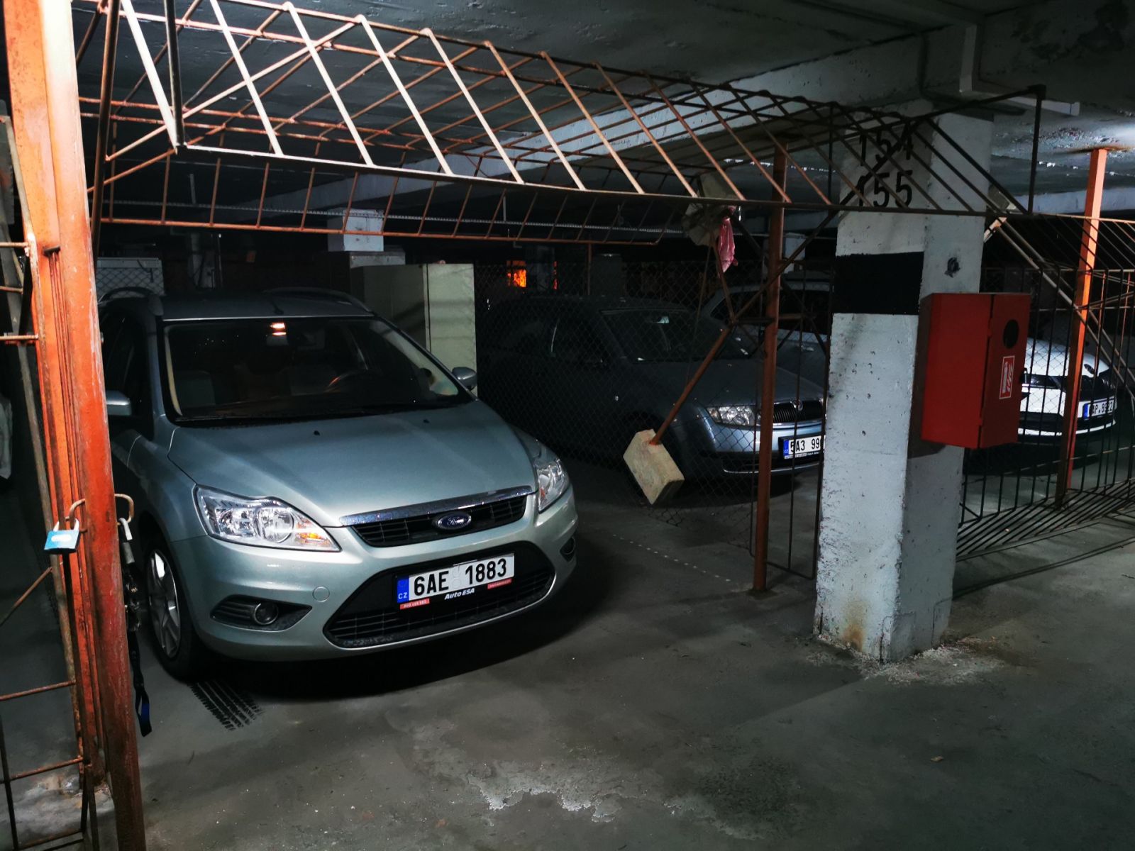 Stání 18 m2 je zabezpečené kovovou uzamykatelnou konstrukcí (klecí, mříží). Objekt je nepřetržitě (24/7) hlídaný ostrahou a kamerovým systémem, vjezd a výjezd na čip.