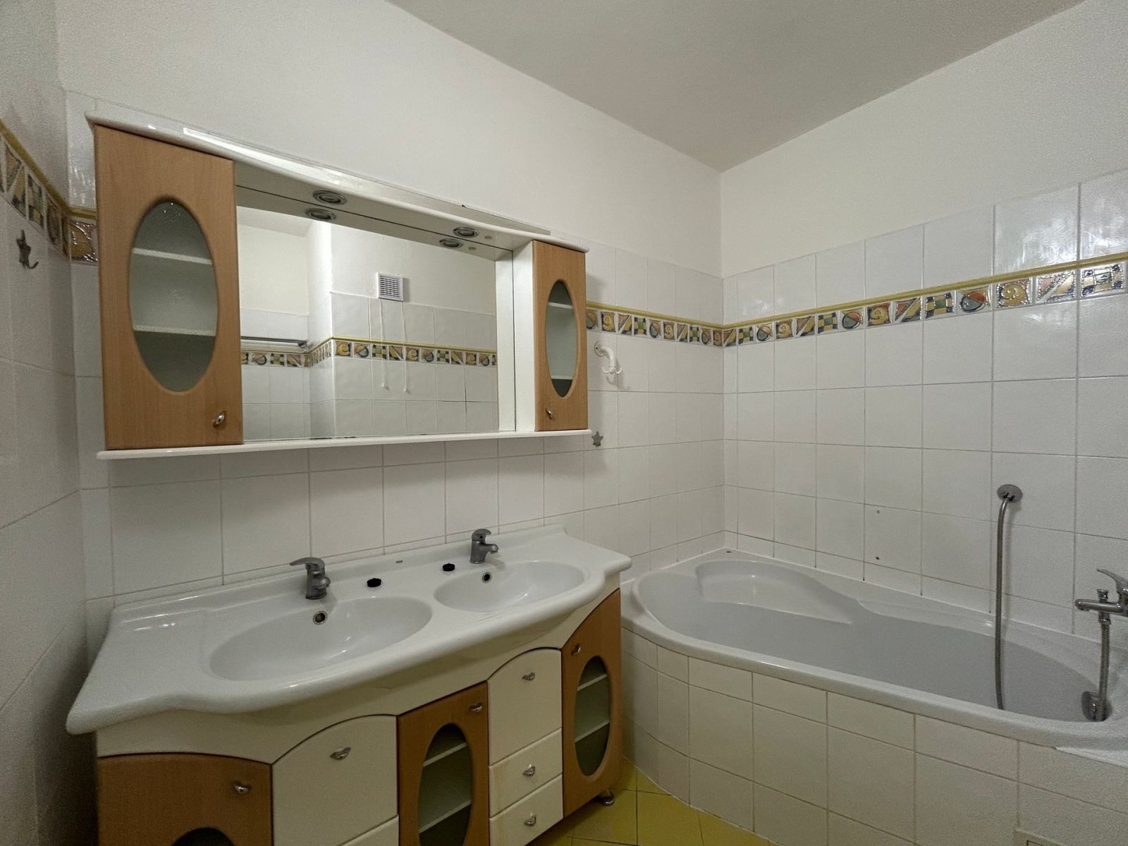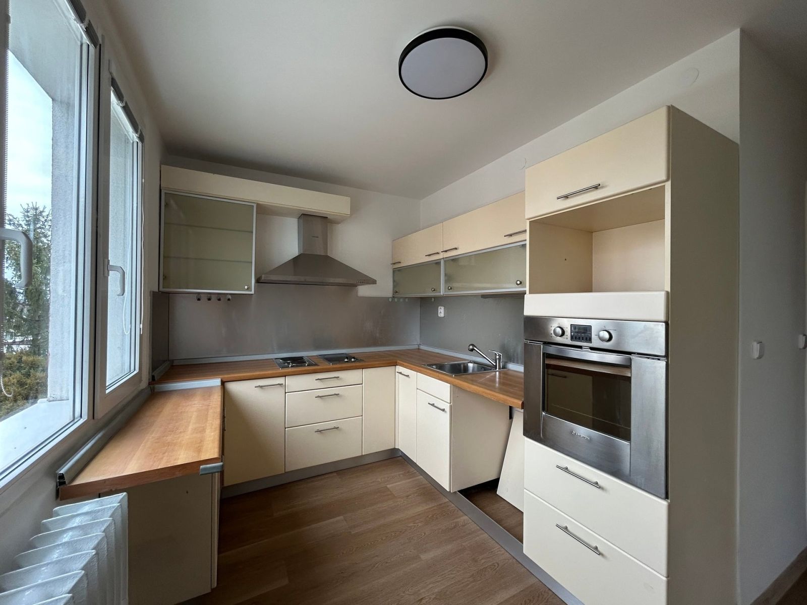 Interiér bytu je prakticky řešen a nabízí úložný prostor díky vestavěné skříni. Srdcem domova je kuchyně vybavená linkou s horkovzdušnou troubou a atypickou kombinací dvouplotýnkových vařičů (sklokeramika i elektřina). V koupelně vás potěší rohová vana, která je jako stvořená pro relaxaci po náročném dni, zde ani umyvadlové skříňky.