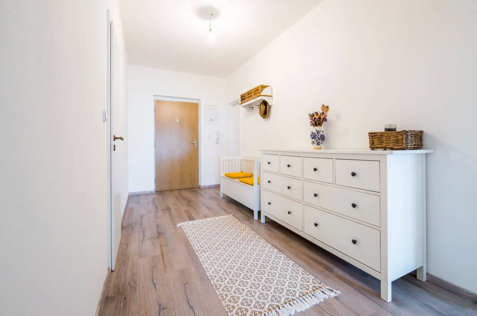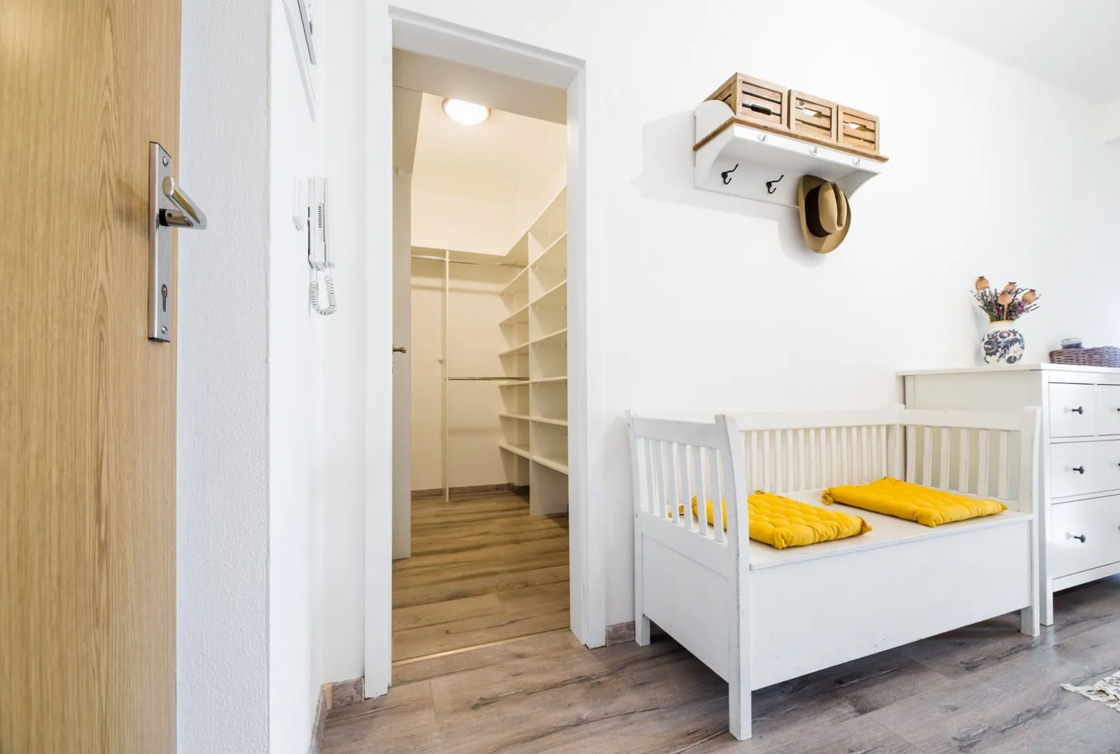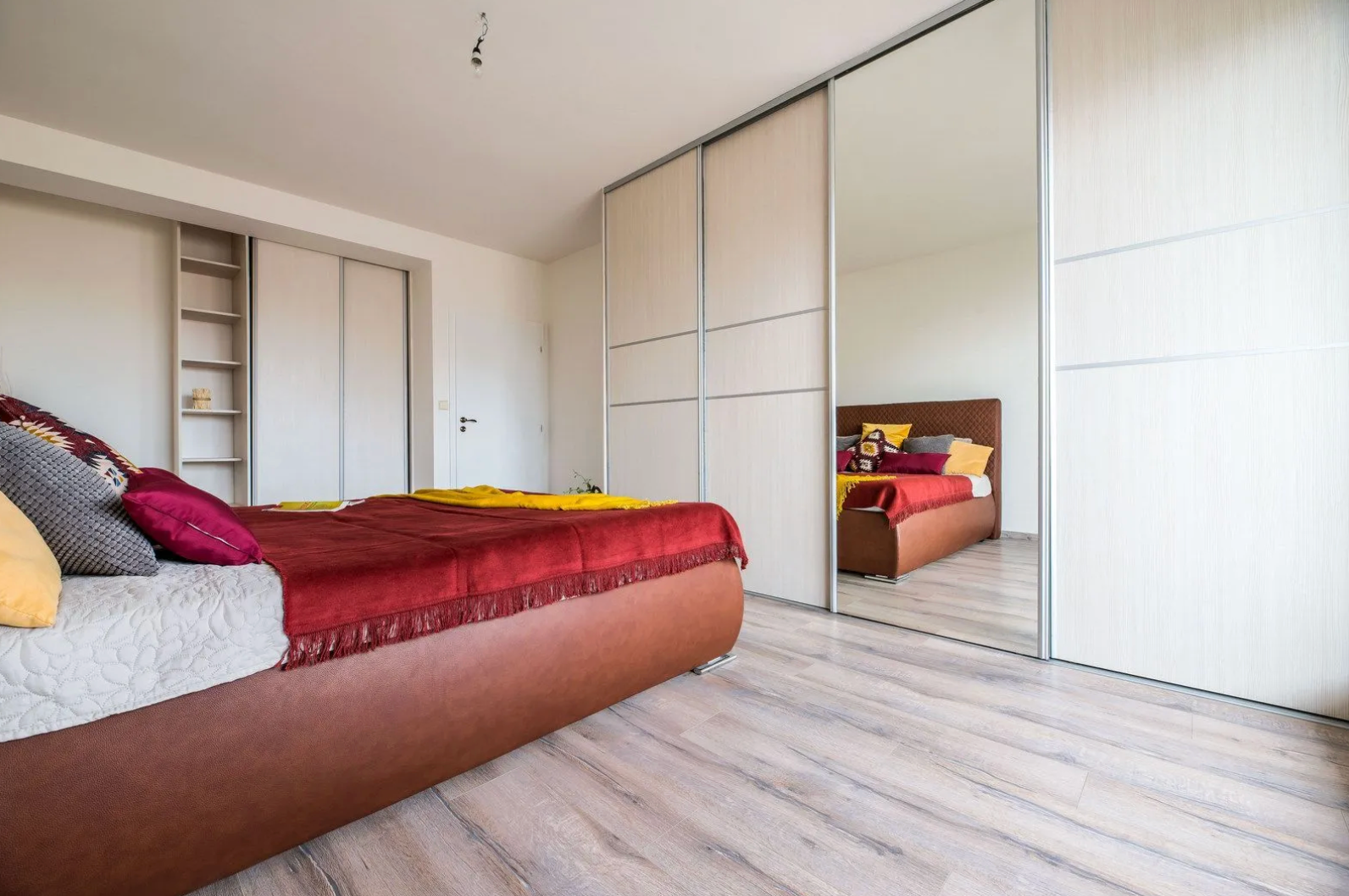 -Úložné priestory: Samostatný šatník (6,3 m2) priamo pri vstupe do bytu, 2x vstavaná skriňa v izbe.