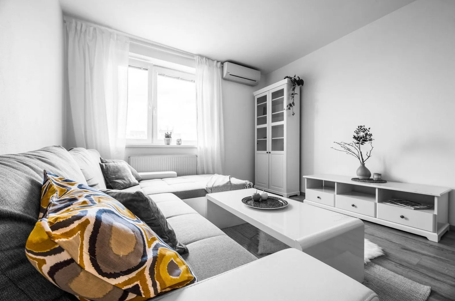 -Komfort: Klimatizácia v obývacej miestnosti, vonkajšia zatemňovacia roleta v izbe.