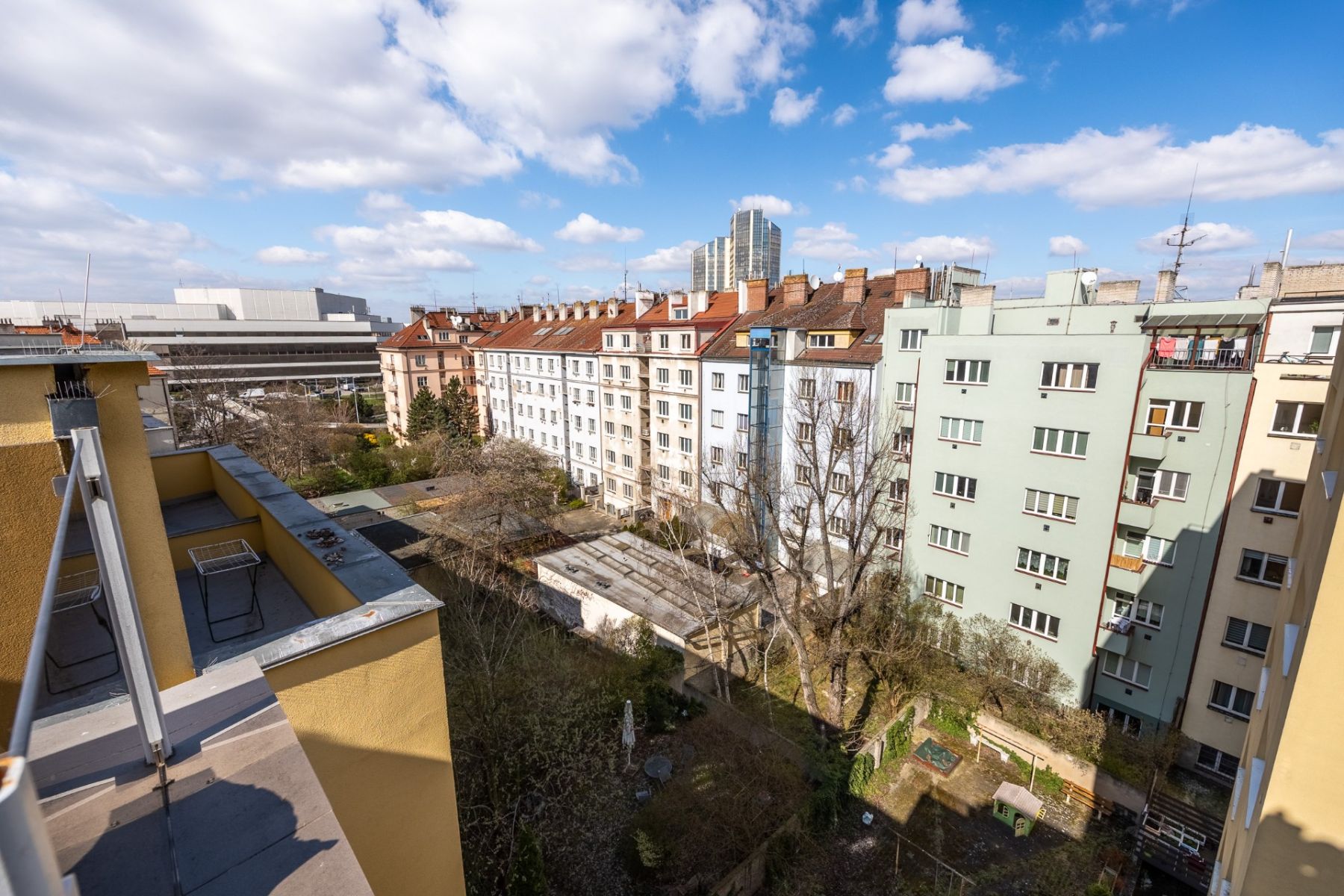 - Byt se nachází v posledním, 5. patře (s výtahem), což zajišťuje dostatek soukromí a světla. Interiér je ve stavu vhodném k okamžitému nastěhování: