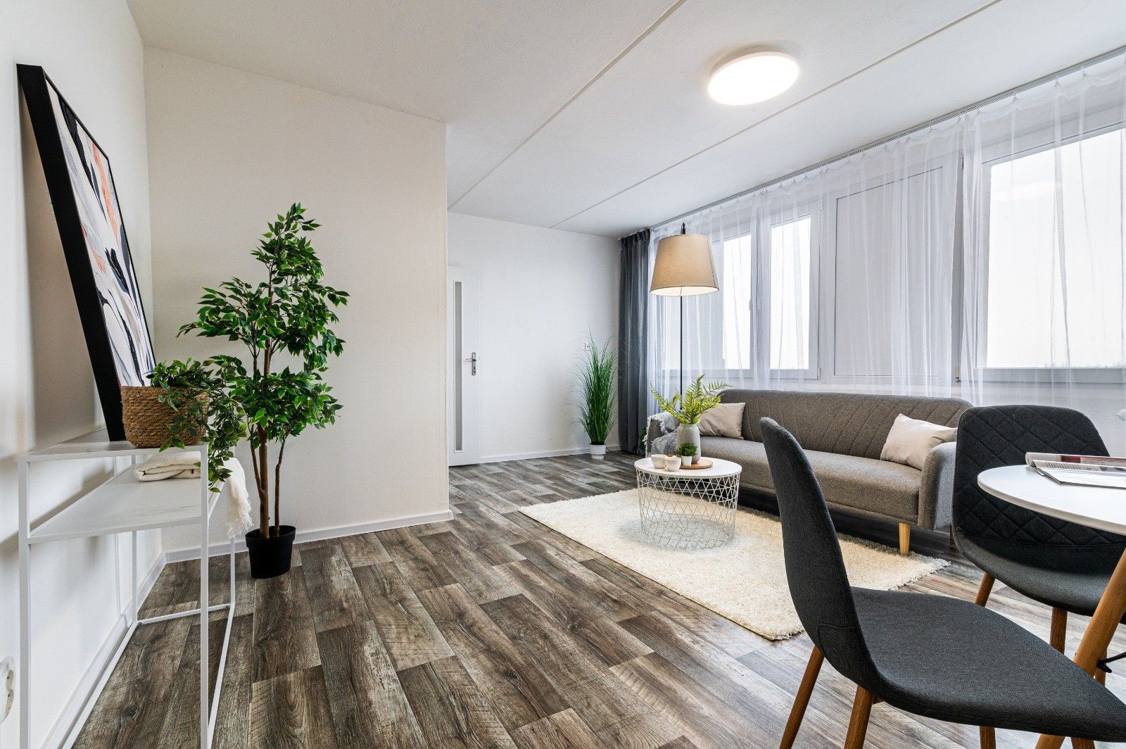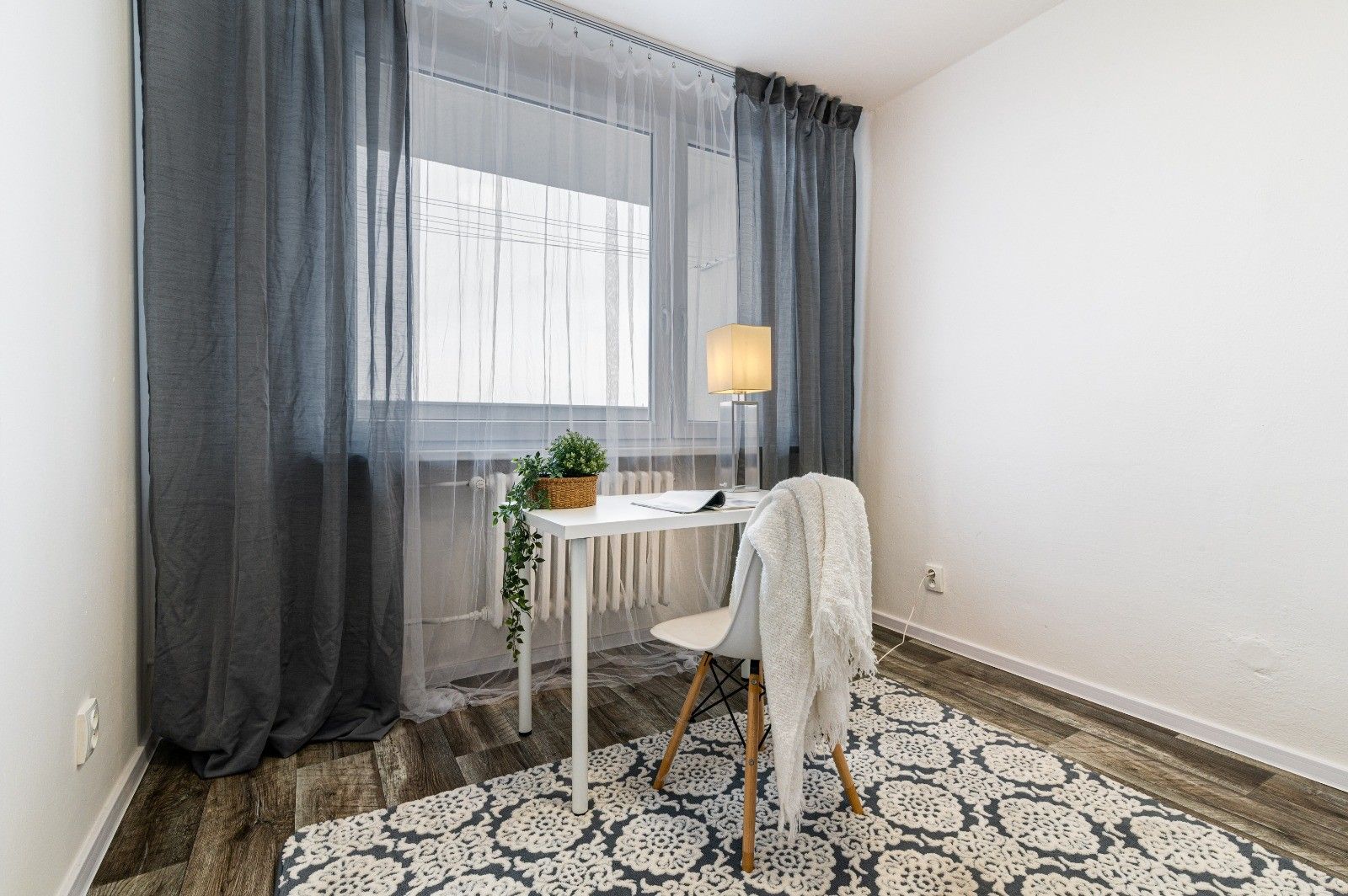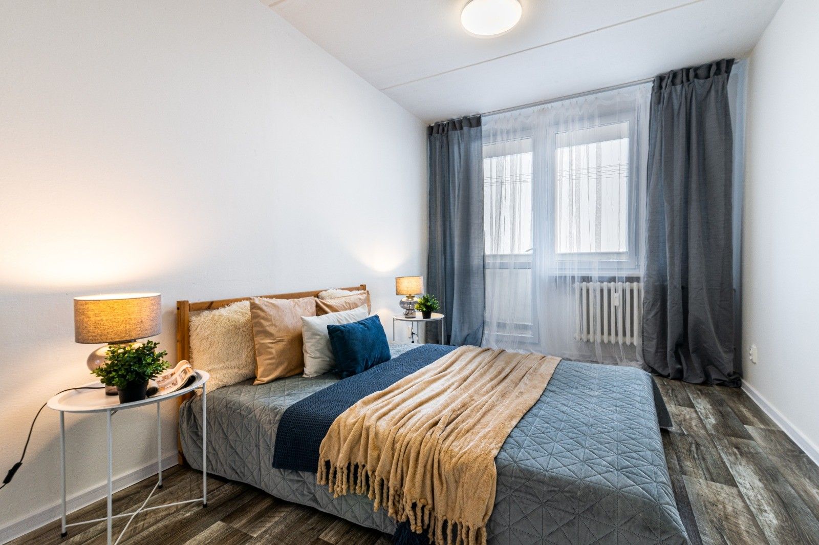 Dispozice bytu nabízí dostatek prostoru pro pohodlné bydlení – velký obývací pokoj, dvě samostatné ložnice, kuchyni s jídelnou, průchozí koupelnu, samostatné WC a velmi prostornou předsíň. Díky velkým oknům je byt velmi světlý a působí příjemně po celý den.