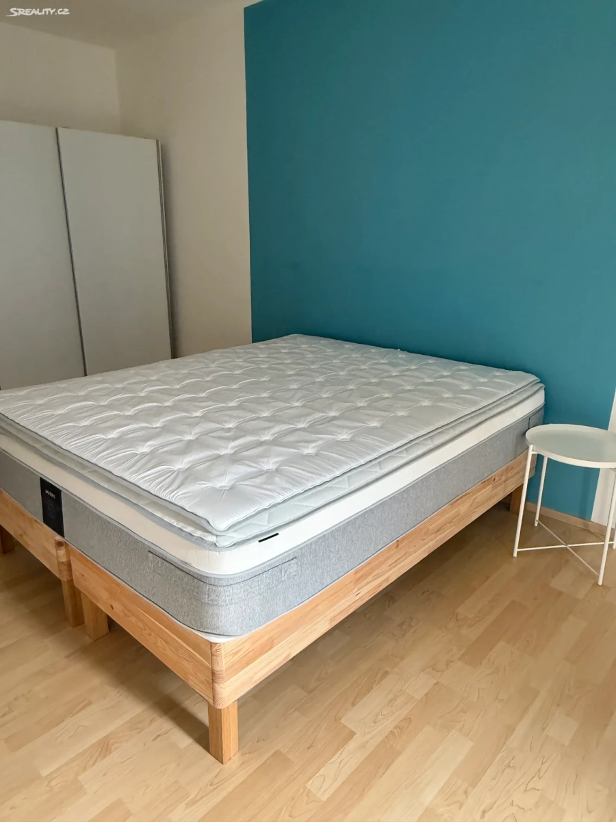 Byt se nachází ve 2. patře a disponuje světlou vstupní chodbou, na kterou navazuje praktická šatna/komora s dostatkem úložného prostoru. Ložnice je plně vybavena – najdete zde prostornou skříň, noční stolky a postel s kvalitní matrací pro pohodlný spánek.