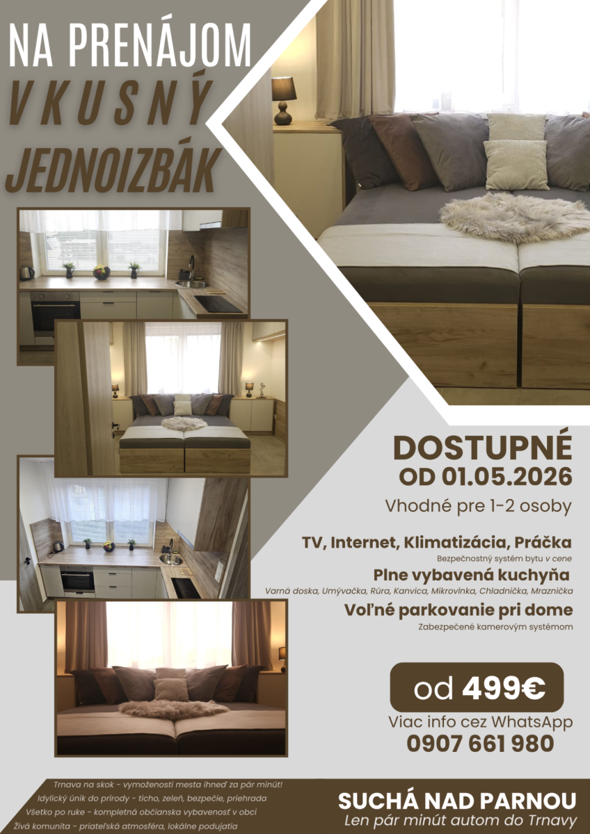 For rent: a tasteful one-room apartment in Sucha nad Parnou.