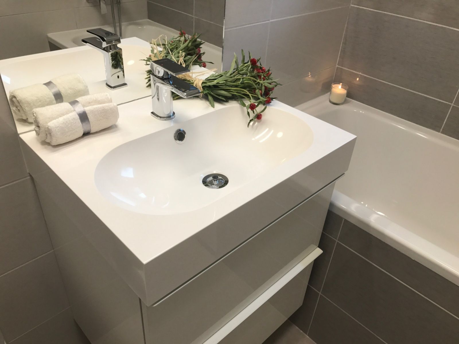 nerezovým dřezem s baterií