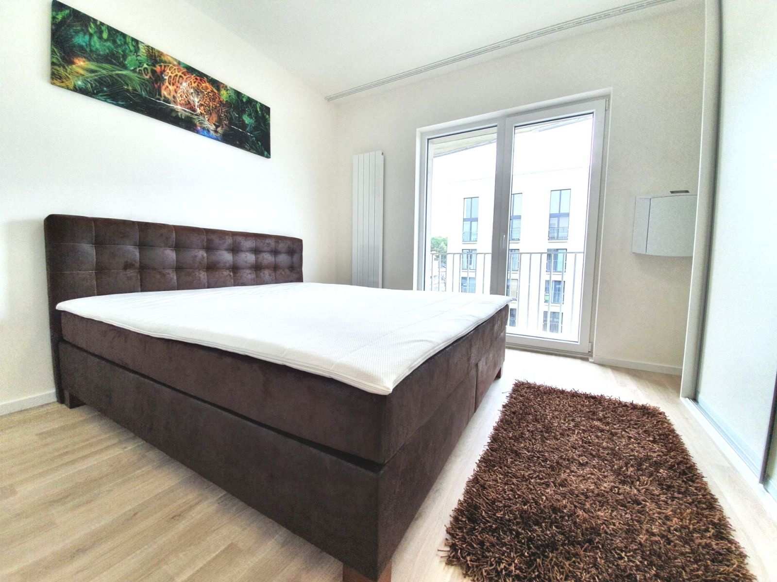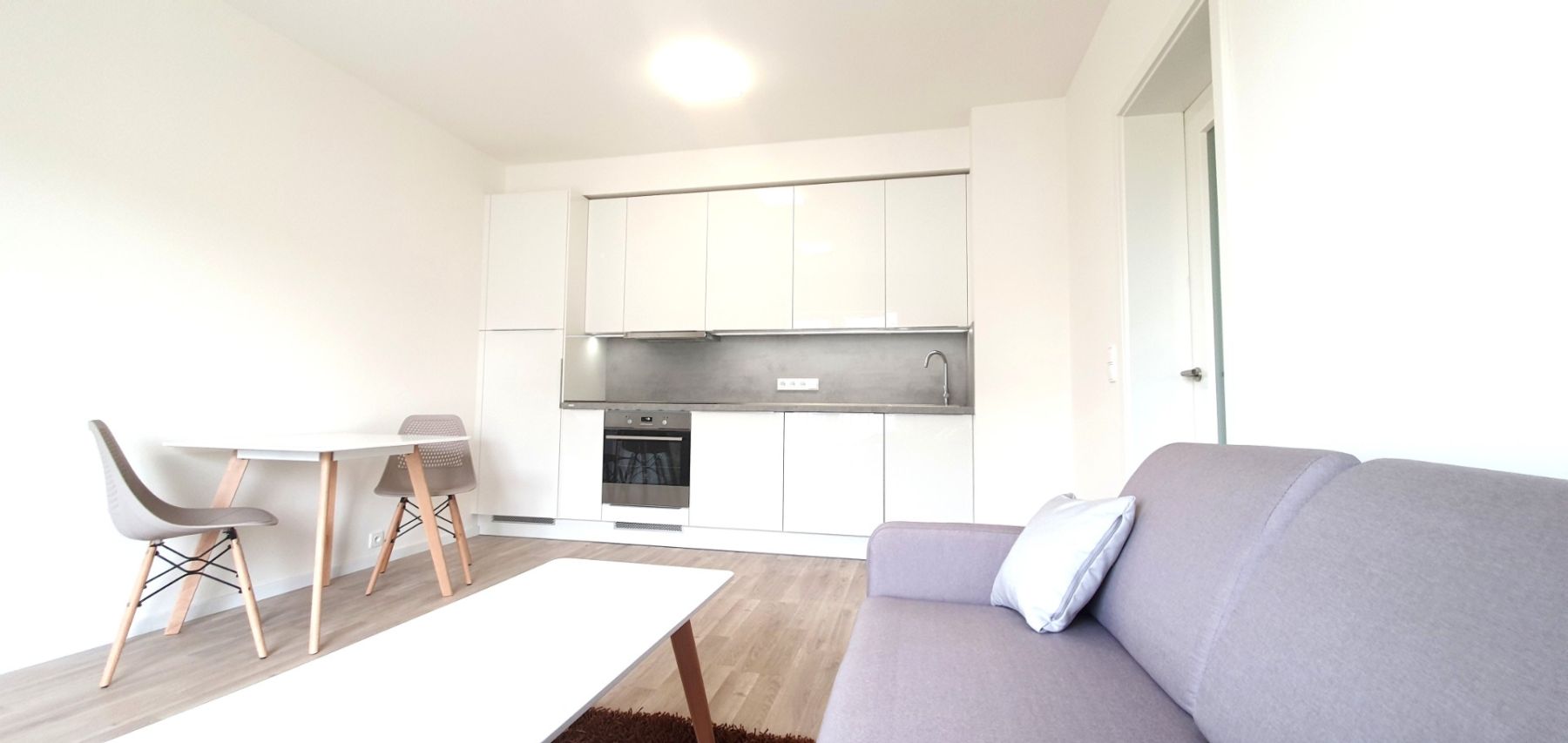 Apartment 2+kk, new building, 5th floor, equipped with a new kitchen and built-in wardrobes, included: a cellar and an internal garage parking accessible directly by elevator. Distance 400 m from: tennis courts, sauna world, indoor swimming pool, bowling, billiards, massages, restaurant. For rent from 1.5.2026. Right next to the bus and tram stop, excellent access to the city center. We recommend. Without pets, please real estate agents please don't call.