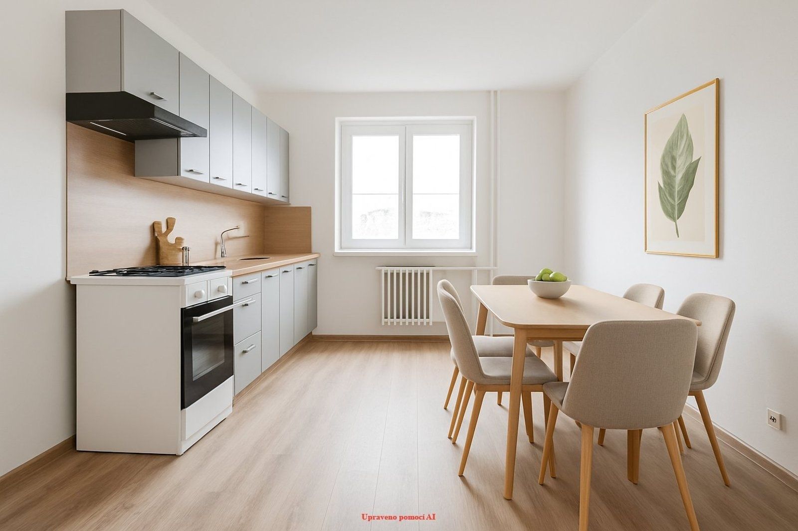 Velká kuchyň s moderní linkou a prostorem pro jídelní stůl.