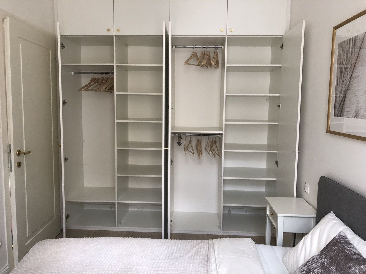 - Bedroom with large fitted wardrobe, comfortable bed, natural down duvet, room darkening curtains