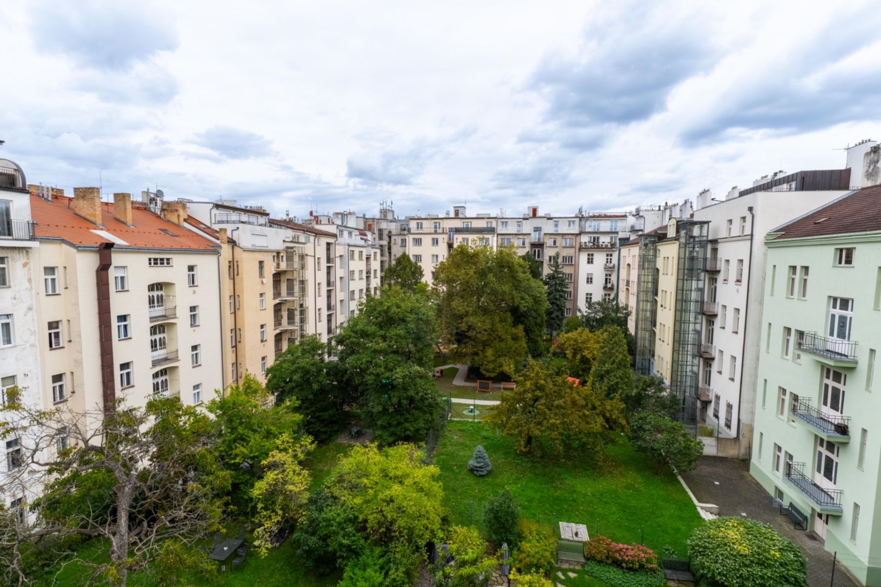 Vinohrady is one of the most attractive areas in Prague, combining elegant architecture, plenty of greenery, full local amenities, and excellent transport connections. In the vicinity, you will find several tram and bus stops as well as Metro A stations – Jiřího z Poděbrad and Náměstí Míru. The building is located in a quiet section of Chodská Street, between Sady Svatopluka Čecha and Korunní Street. Within walking distance are Riegrovy sady and Jiřího z Poděbrad Square, which features popular farmers’ markets, cafes, restaurants, and shops. The area consistently retains high value and is one of the most favored places to live in Prague.