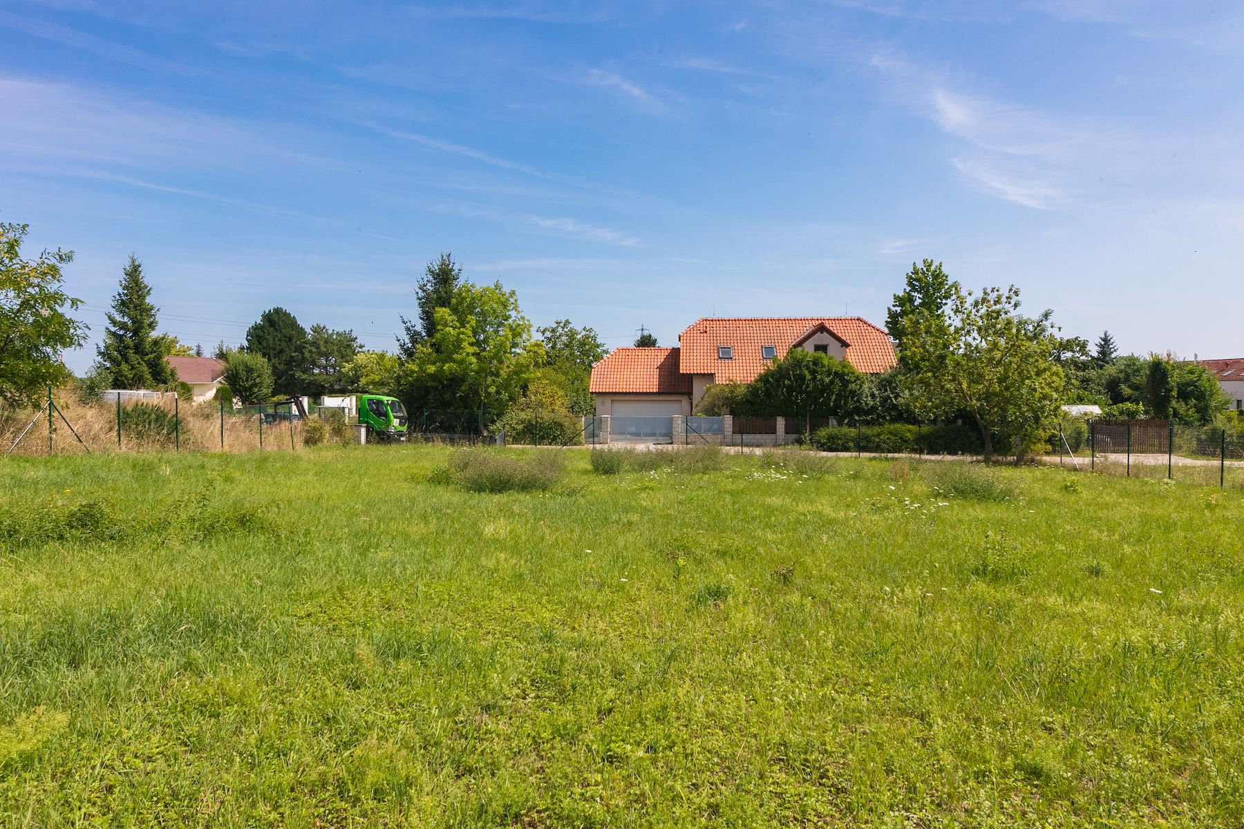 --Stav objektu: Rovinatý, zatravněný a kompletně oplocený pozemek